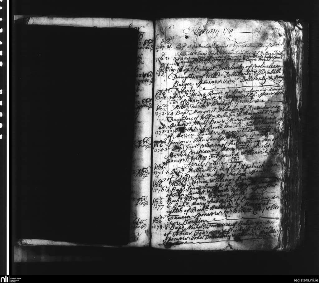 Slieverue; County of Waterford, Kilkenny; Diocese of Ossory. Baptisms, Feb. 1791 to Apr. 1791