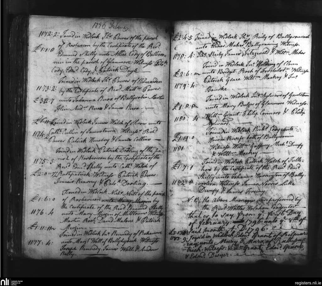 Slieverue; County of Waterford, Kilkenny; Diocese of Ossory. Marriages, Feb. 1796