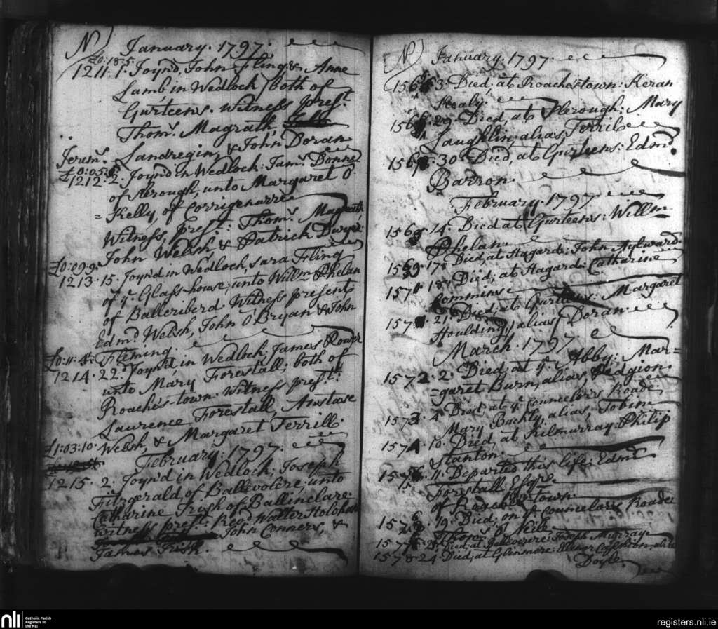 Slieverue; County of Waterford, Kilkenny; Diocese of Ossory. Marriages, Deaths, Jan. 1797 to Mar. 1797