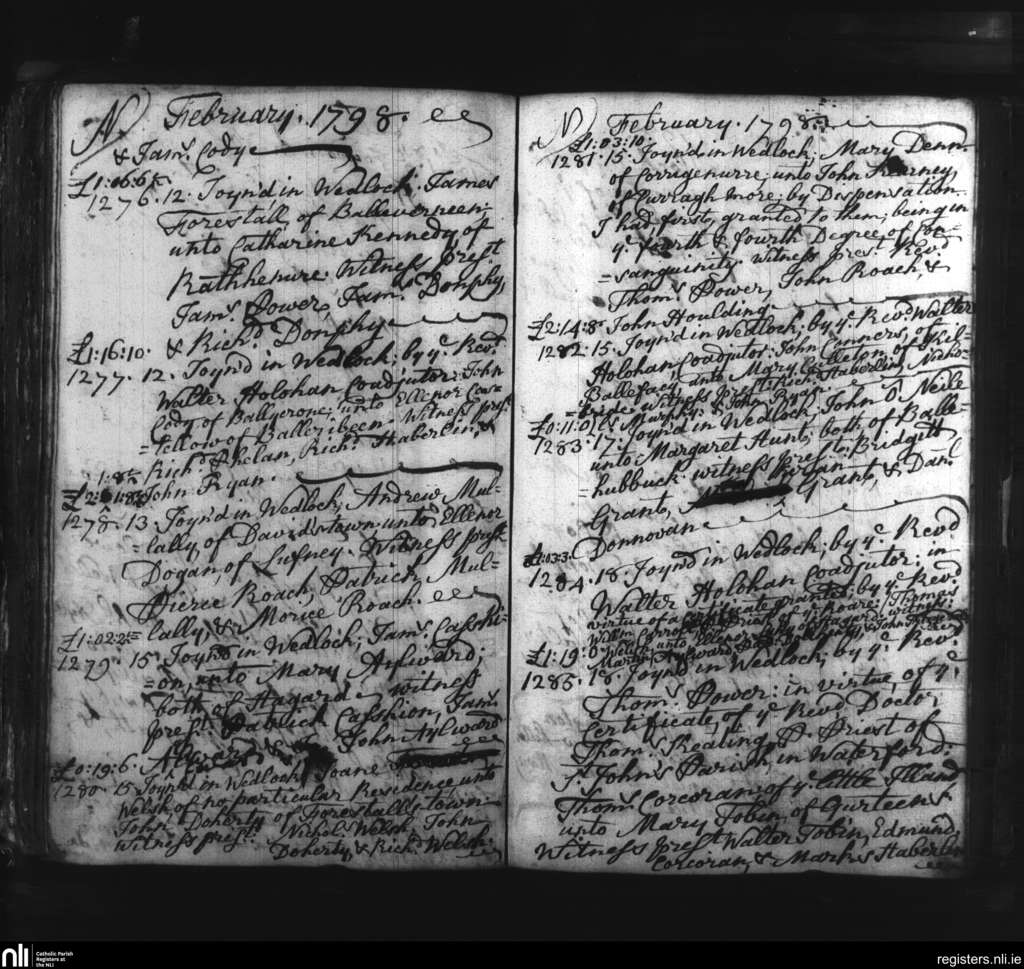Slieverue; County of Waterford, Kilkenny; Diocese of Ossory. Marriages, Feb. 1798