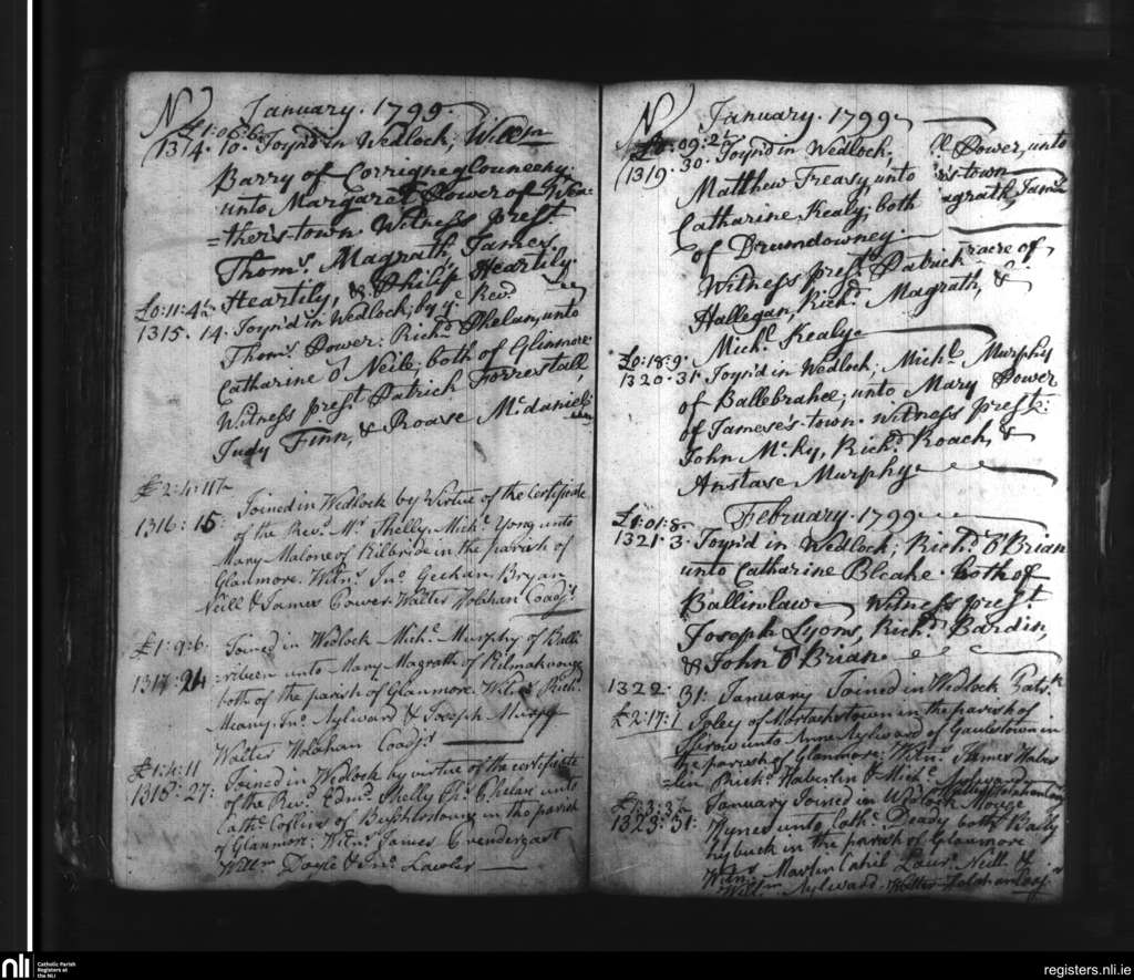 Slieverue; County of Waterford, Kilkenny; Diocese of Ossory. Marriages, Jan. 1799 to Feb. 1799