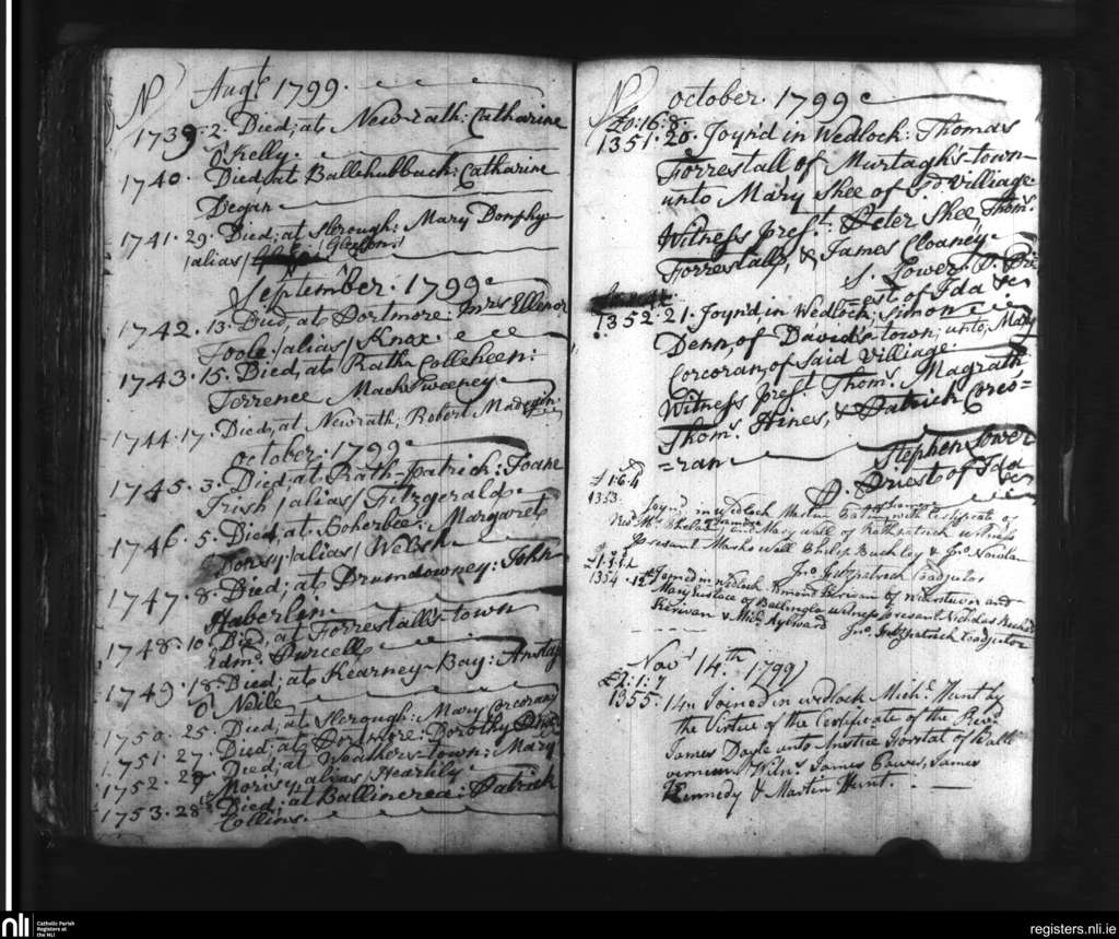 Slieverue; County of Waterford, Kilkenny; Diocese of Ossory. Marriages, Aug. 1799 to Nov. 1799