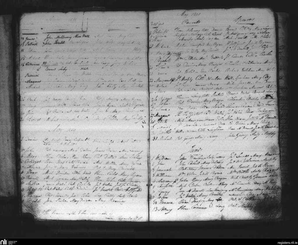 Thomastown; County of Kilkenny; Diocese of Ossory. Baptisms, Apr. 1810 to June 1810