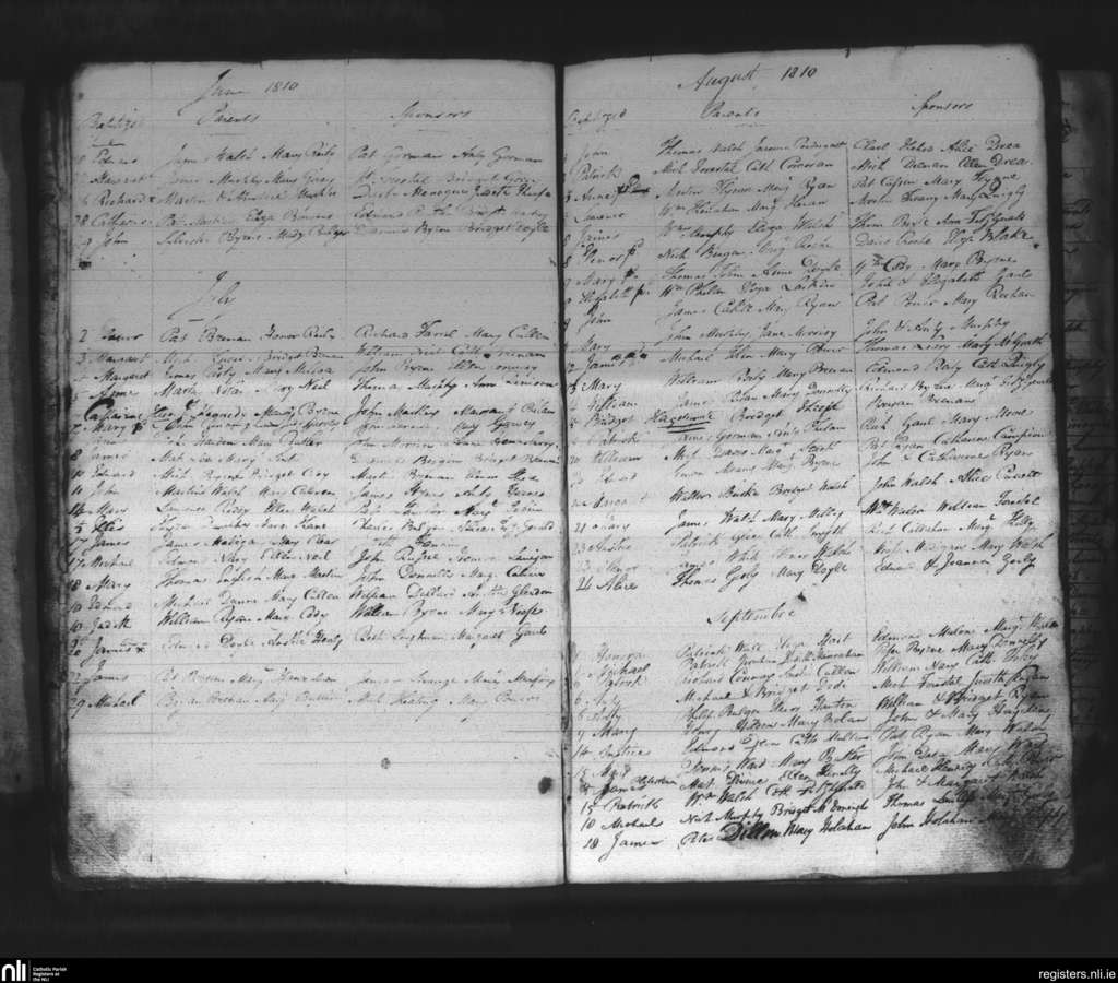 Thomastown; County of Kilkenny; Diocese of Ossory. Baptisms, June 1810 to Sep. 1810