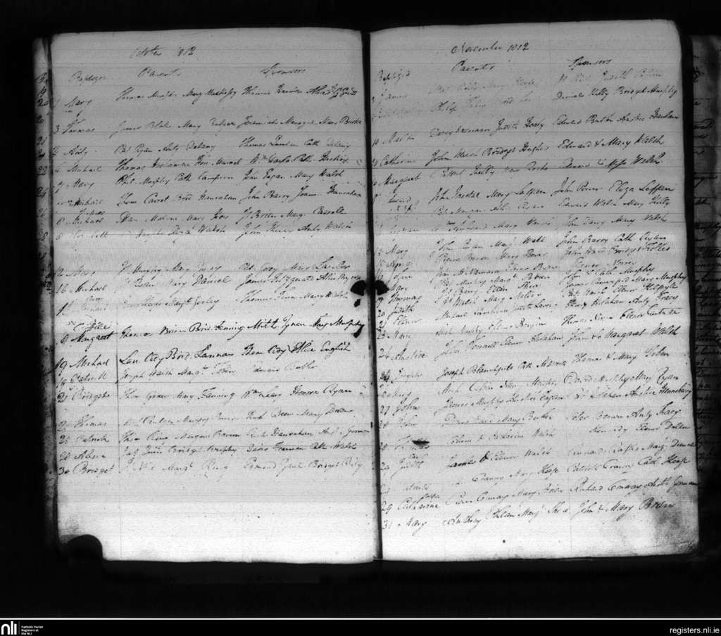 Thomastown; County of Kilkenny; Diocese of Ossory. Baptisms, Oct. 1812 to Nov. 1812