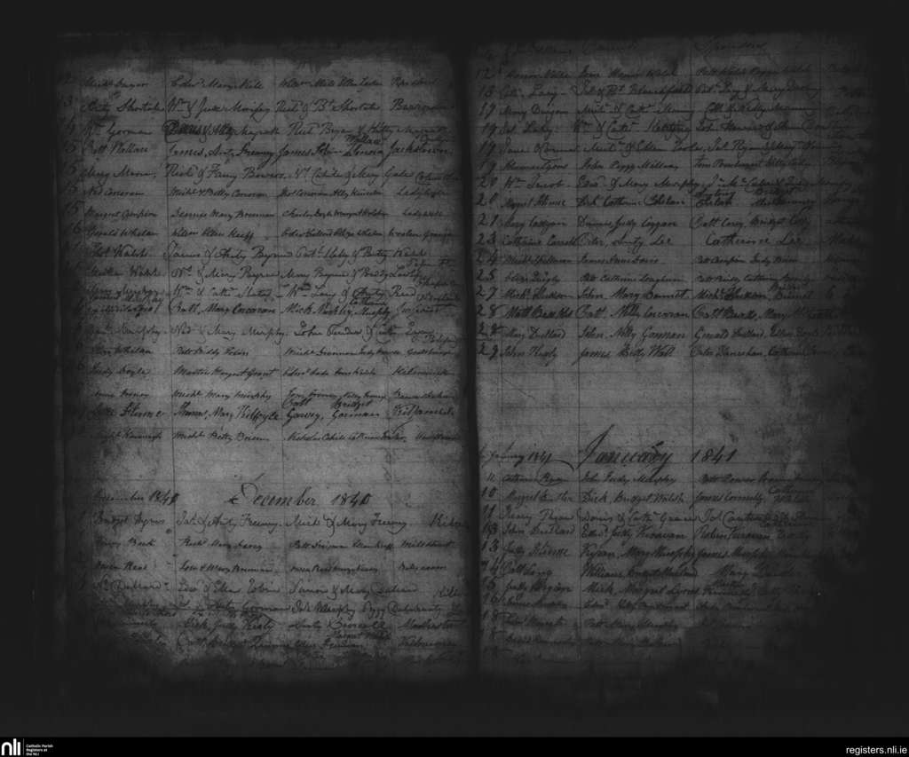 Thomastown; County of Kilkenny; Diocese of Ossory. Baptisms, Nov. 1840 to Jan. 1841