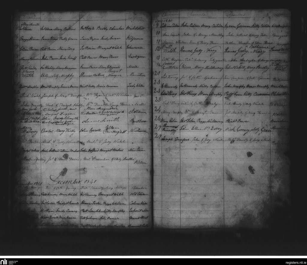 Thomastown; County of Kilkenny; Diocese of Ossory. Baptisms, Nov. 1841 to Dec. 1841