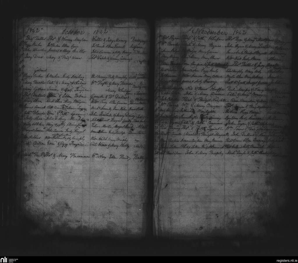 Thomastown; County of Kilkenny; Diocese of Ossory. Baptisms, Oct. 1842 to Nov. 1842