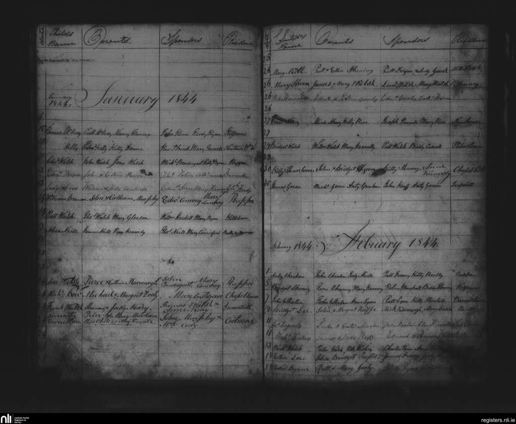 Thomastown; County of Kilkenny; Diocese of Ossory. Baptisms, Jan. 1844 to Feb. 1844