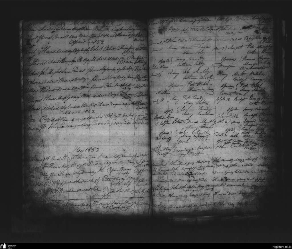 Thomastown; County of Kilkenny; Diocese of Ossory. Baptisms, Mar. 1852 to Aug. 1852