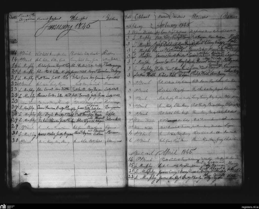 Thomastown; County of Kilkenny; Diocese of Ossory. Marriages, Nov. 1844 to Apr. 1845