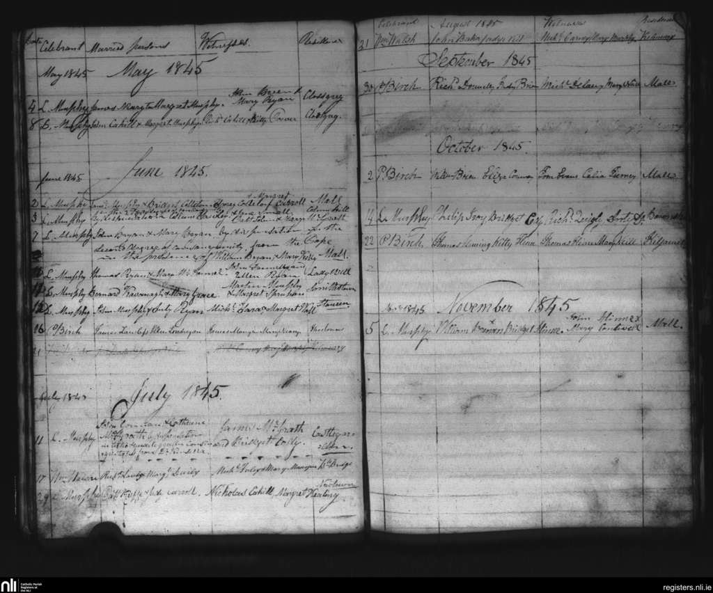 Thomastown; County of Kilkenny; Diocese of Ossory. Marriages, May 1845 to Nov. 1845