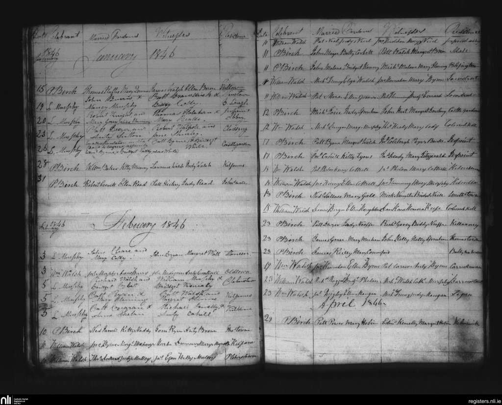 Thomastown; County of Kilkenny; Diocese of Ossory. Marriages, Jan. 1846 to Apr. 1846