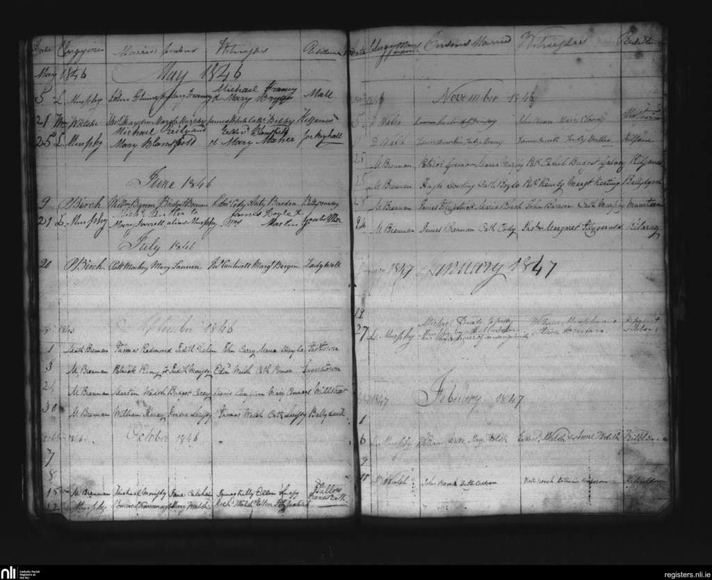 Thomastown; County of Kilkenny; Diocese of Ossory. Marriages, May 1846 to Feb. 1847