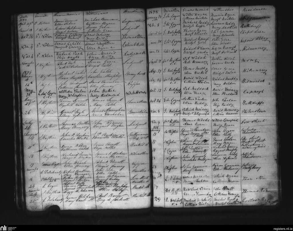 Thomastown; County of Kilkenny; Diocese of Ossory. Marriages, Apr. 1873 to Feb. 1876