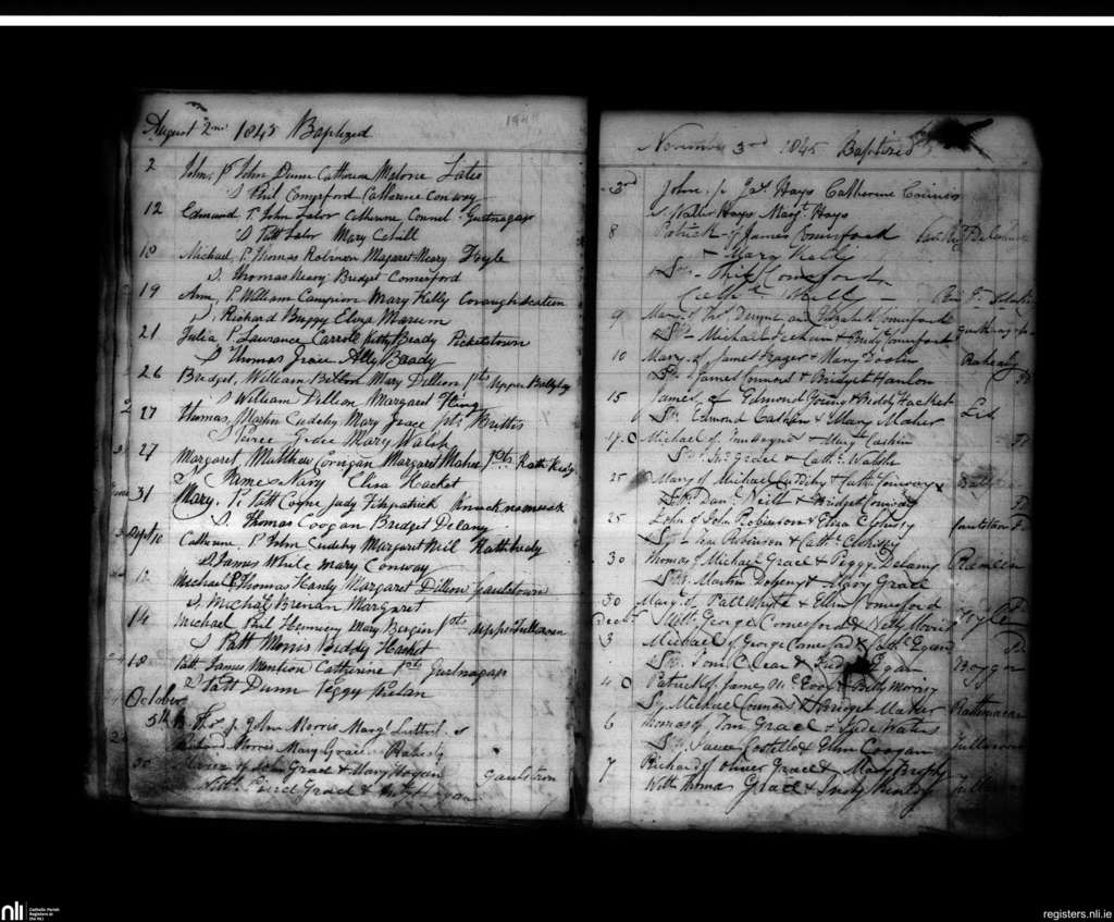Tullaroan; County of Kilkenny; Diocese of Ossory. Baptisms, Aug. 1845 to Dec. 1845