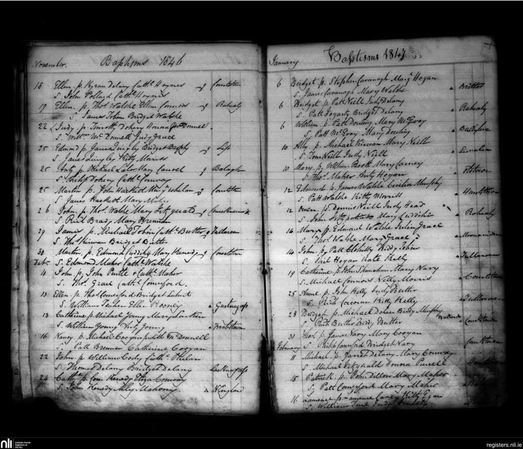 Tullaroan; County of Kilkenny; Diocese of Ossory. Baptisms, Nov. 1846 to Feb. 1847