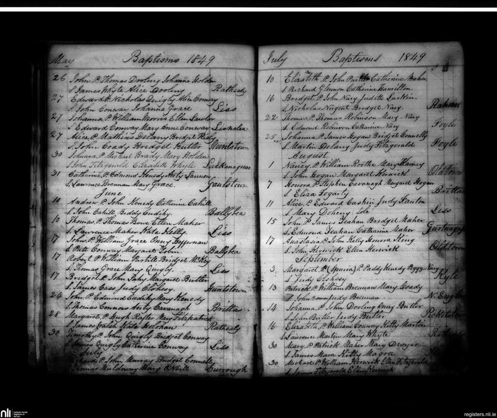 Tullaroan; County of Kilkenny; Diocese of Ossory. Baptisms, May 1849 to Sep. 1849
