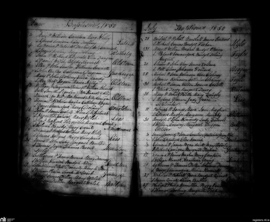 Tullaroan; County of Kilkenny; Diocese of Ossory. Baptisms, June 1850 to Oct. 1850