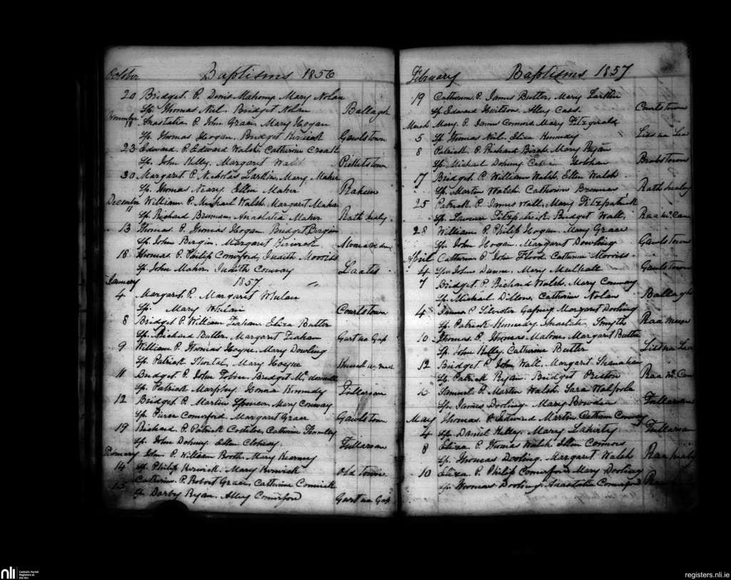 Tullaroan; County of Kilkenny; Diocese of Ossory. Baptisms, Oct. 1856 to May 1857