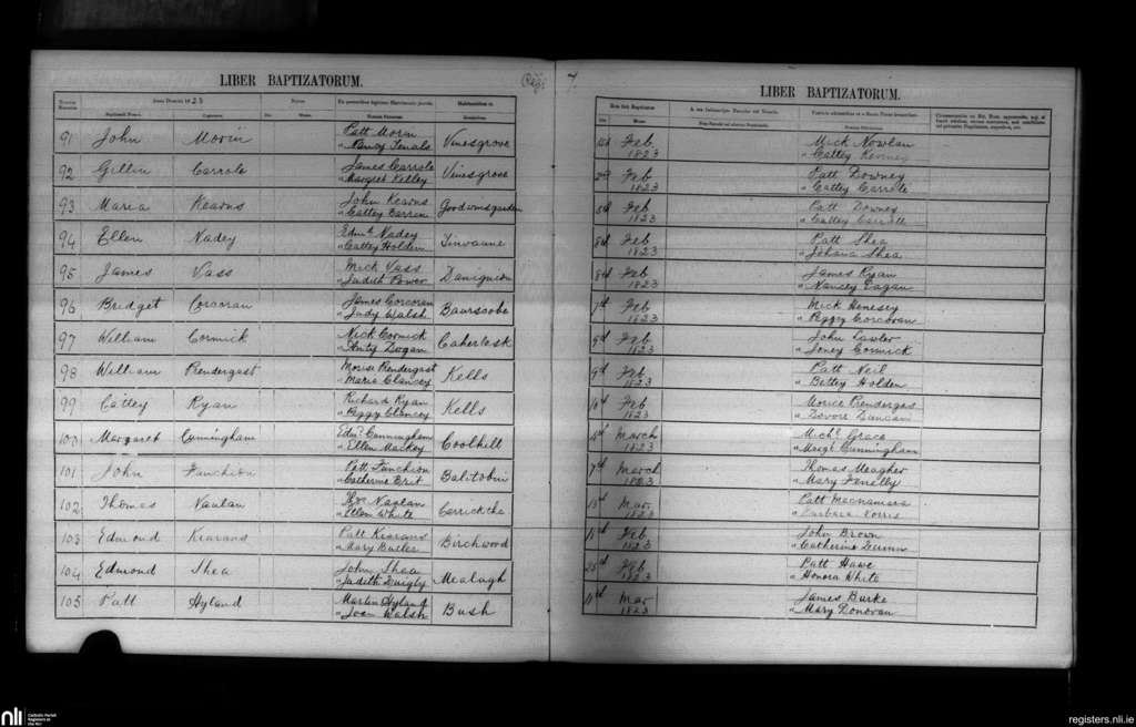 Windgap; County of Kilkenny; Diocese of Ossory. Baptisms, Feb. 1823 to Mar. 1823