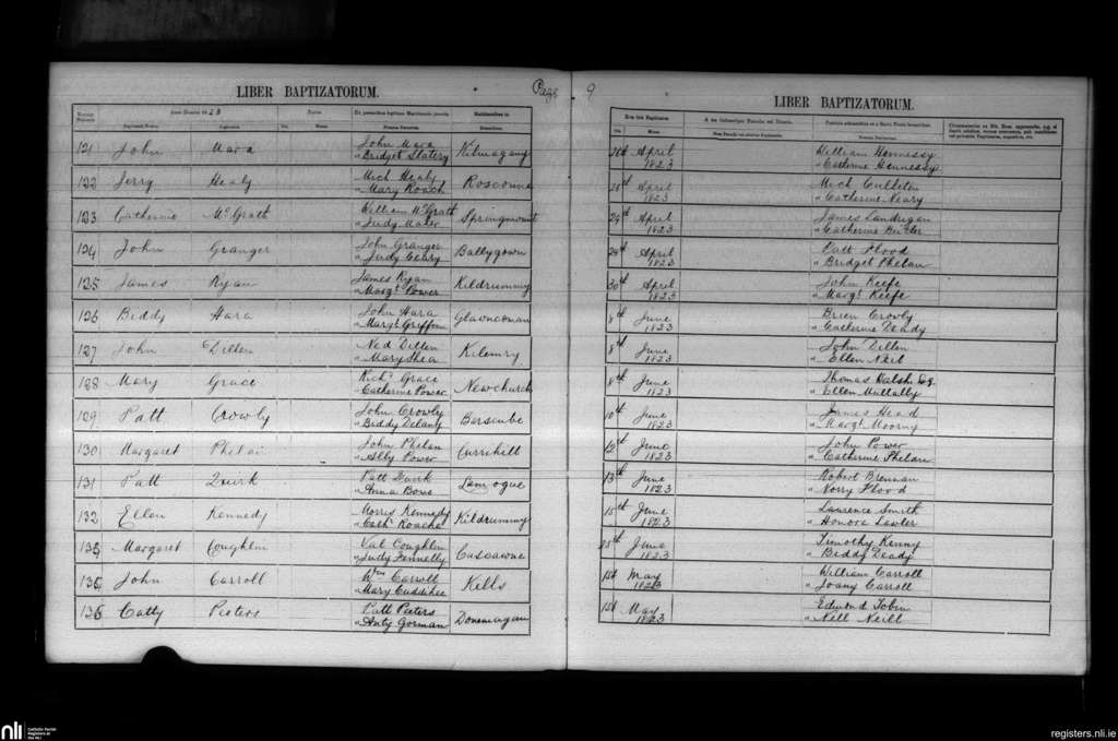 Windgap; County of Kilkenny; Diocese of Ossory. Baptisms, Apr. 1823 to June 1823