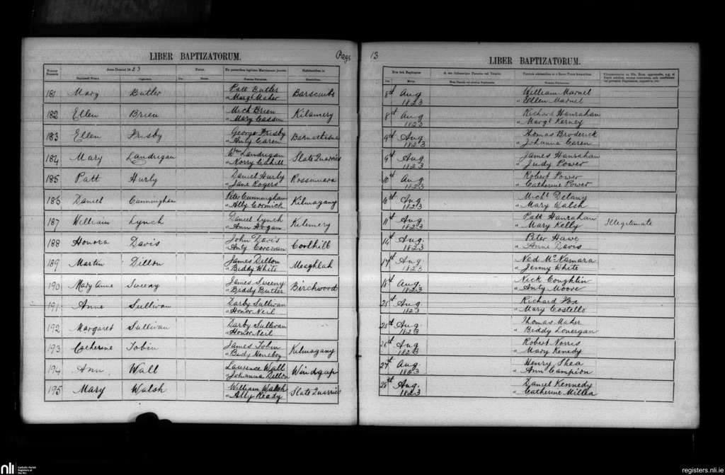 Windgap; County of Kilkenny; Diocese of Ossory. Baptisms, Aug. 1823