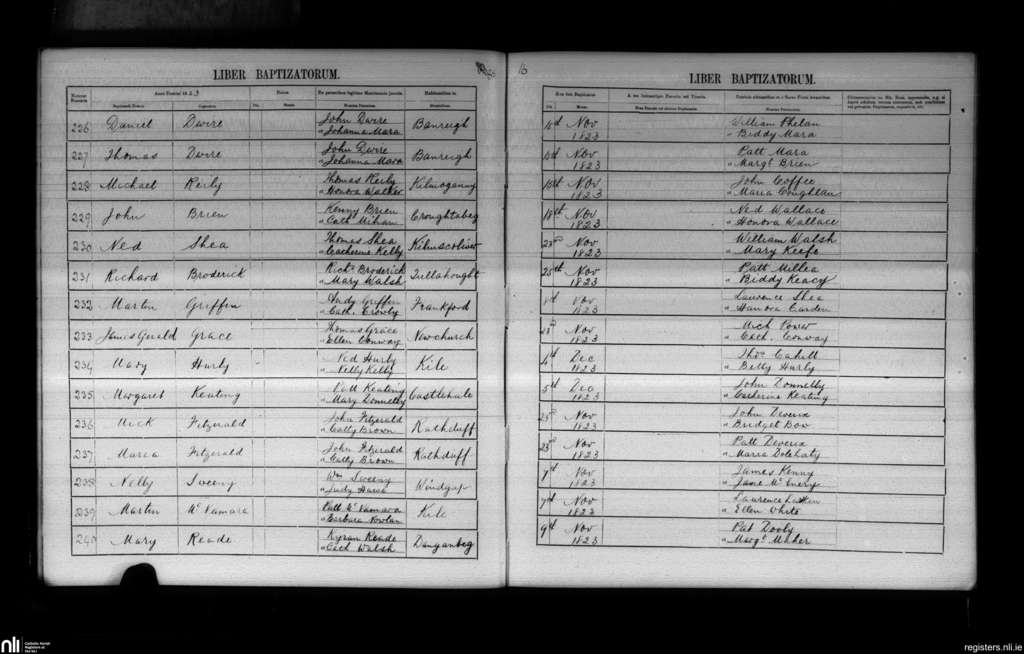Windgap; County of Kilkenny; Diocese of Ossory. Baptisms, Nov. 1823 to Dec. 1823