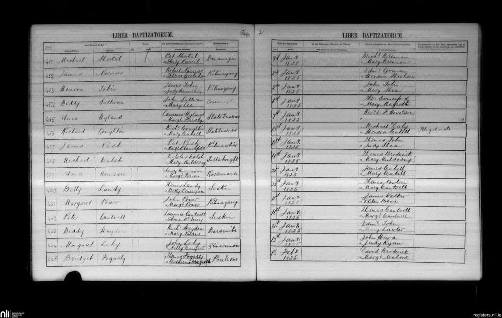 Windgap; County of Kilkenny; Diocese of Ossory. Baptisms, Jan. 1825 to Feb. 1825
