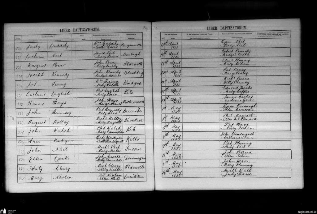 Windgap; County of Kilkenny; Diocese of Ossory. Baptisms, Apr. 1825 to May 1825