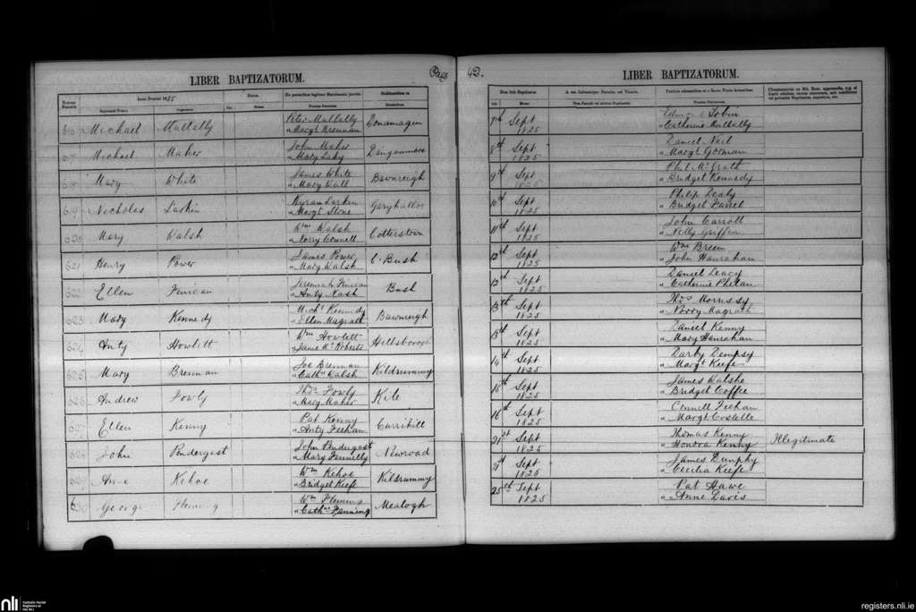 Windgap; County of Kilkenny; Diocese of Ossory. Baptisms, Sep. 1825