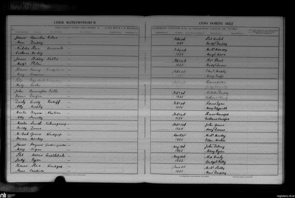 Windgap; County of Kilkenny; Diocese of Ossory. Marriages, Feb. 1825 to June 1825