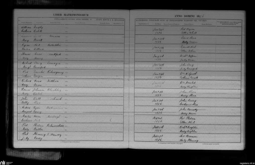Windgap; County of Kilkenny; Diocese of Ossory. Marriages, Jan. 1826 to Feb. 1826