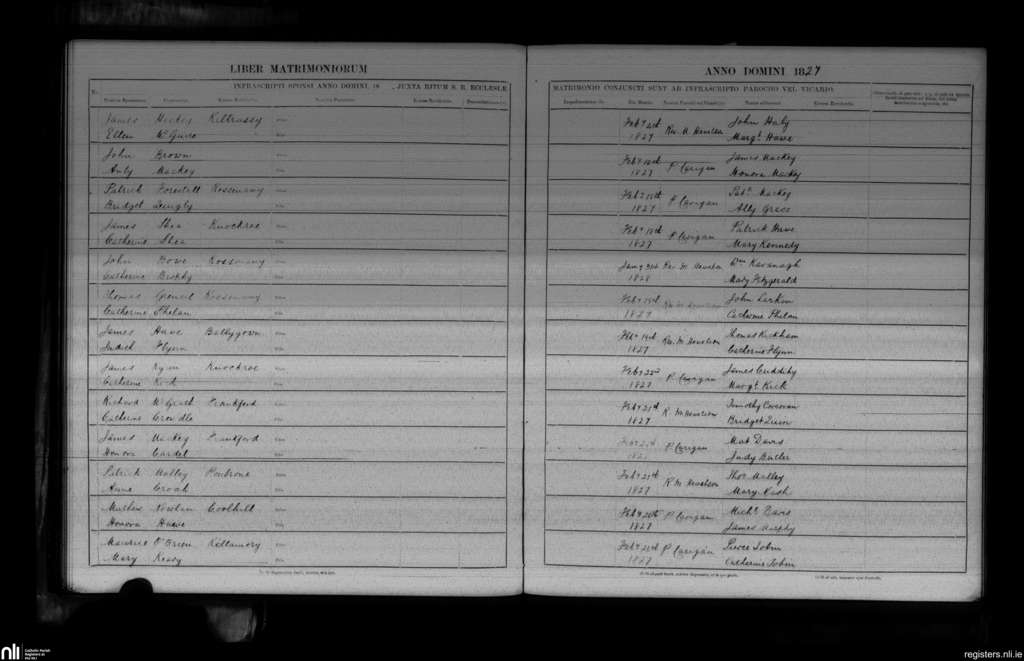 Windgap; County of Kilkenny; Diocese of Ossory. Marriages, Feb. 1827 to Jan. 1828