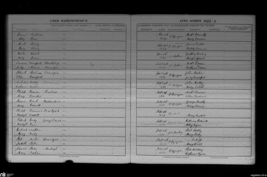 Windgap; County of Kilkenny; Diocese of Ossory. Marriages, Nov. 1832 to Feb. 1833