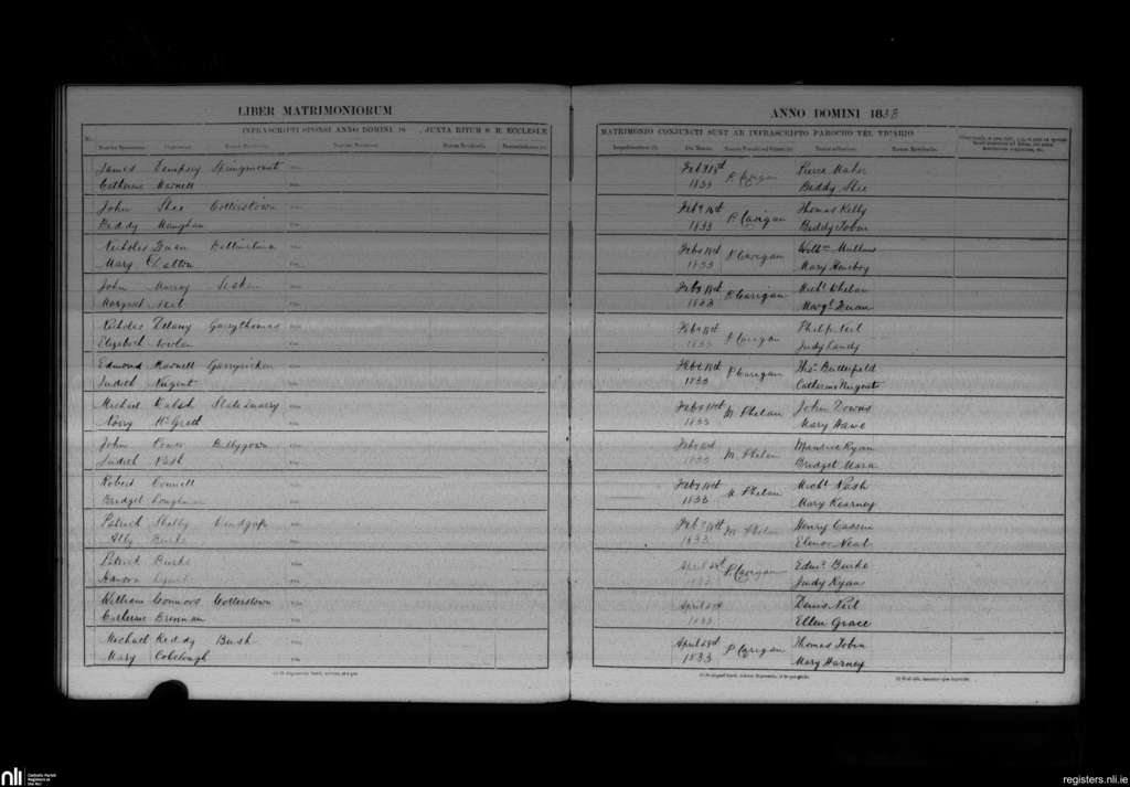 Windgap; County of Kilkenny; Diocese of Ossory. Marriages, Feb. 1833 to Apr. 1833
