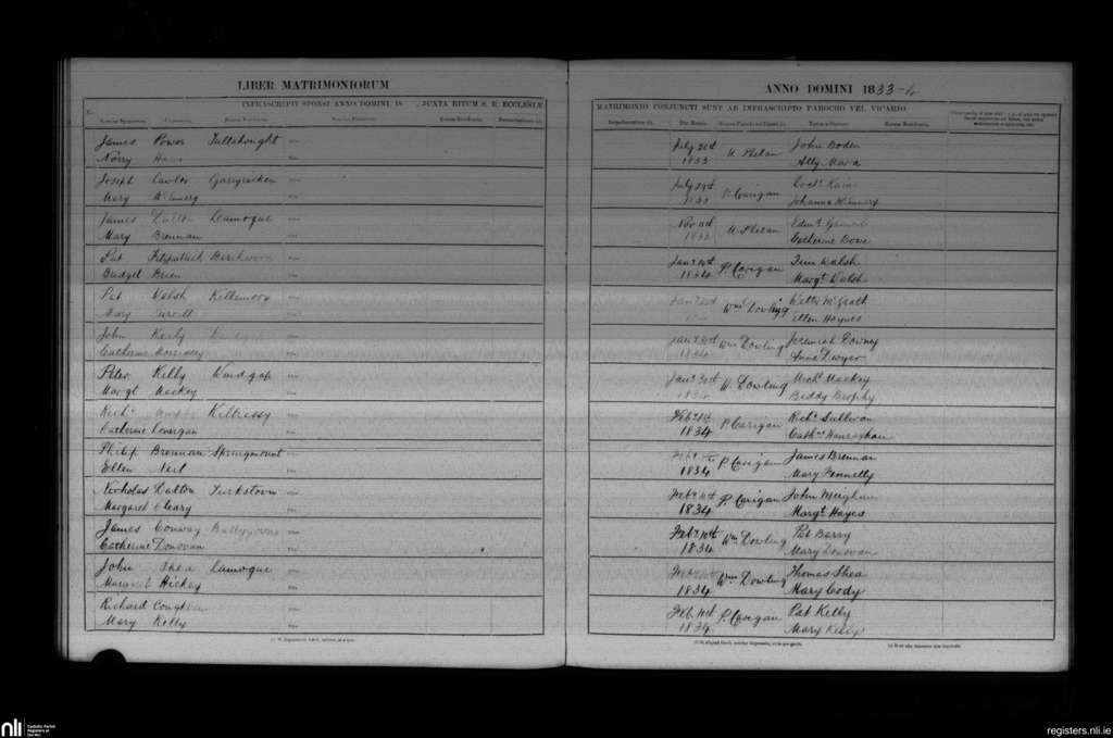 Windgap; County of Kilkenny; Diocese of Ossory. Marriages, July 1833 to Feb. 1834