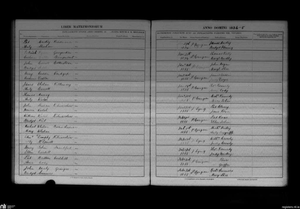 Windgap; County of Kilkenny; Diocese of Ossory. Marriages, Nov. 1834 to Feb. 1835