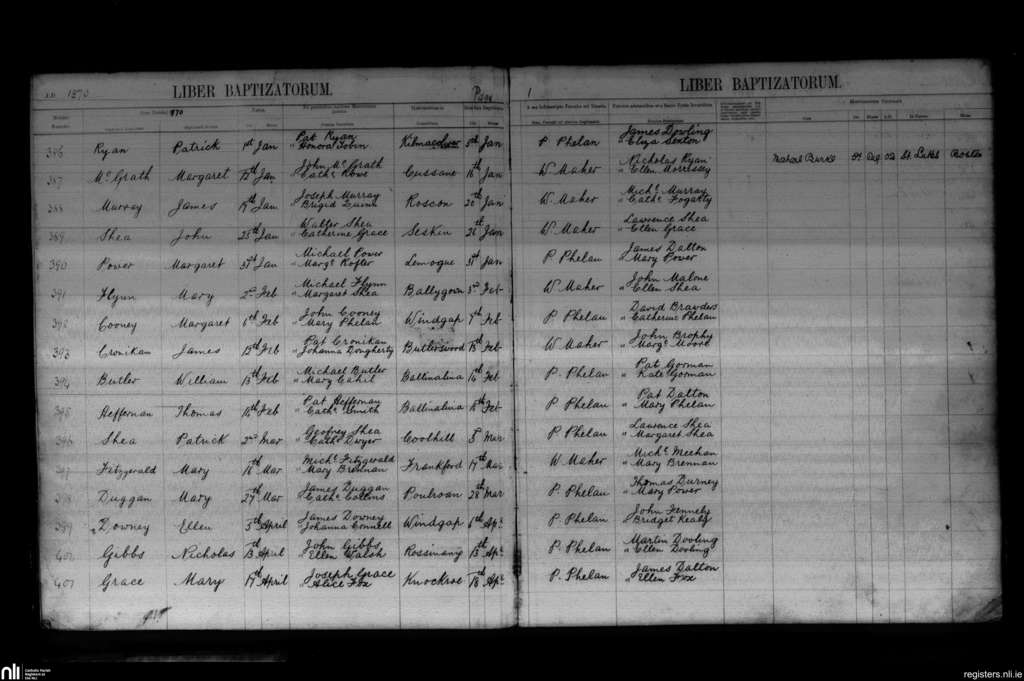 Windgap; County of Kilkenny; Diocese of Ossory. Baptisms, Jan. 1870 to Apr. 1870