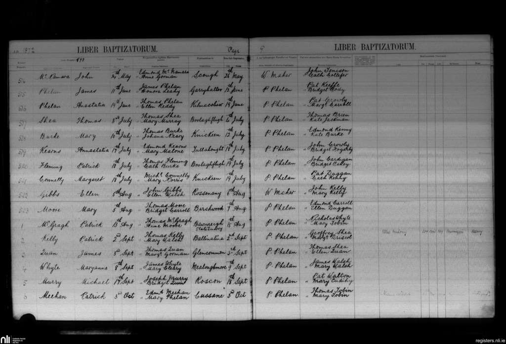 Windgap; County of Kilkenny; Diocese of Ossory. Baptisms, May 1872 to Oct. 1872