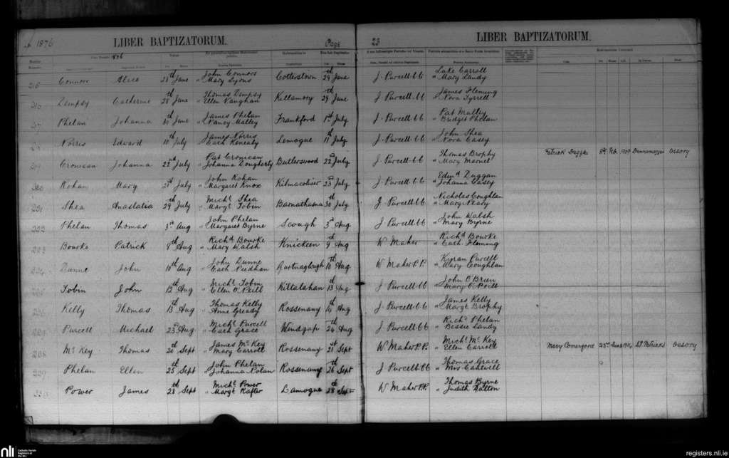 Windgap; County of Kilkenny; Diocese of Ossory. Baptisms, June 1876 to Sep. 1876