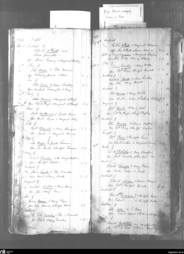 Addergoole and Liskeevy; County of Galway; Archdiocese of Tuam. Baptisms, Aug. 1858 to Sep. 1858