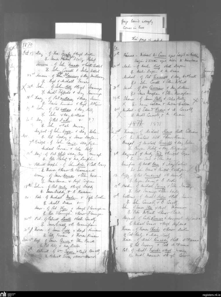 Addergoole and Liskeevy; County of Galway; Archdiocese of Tuam. Baptisms, Oct. 1870 to Jan. 1871
