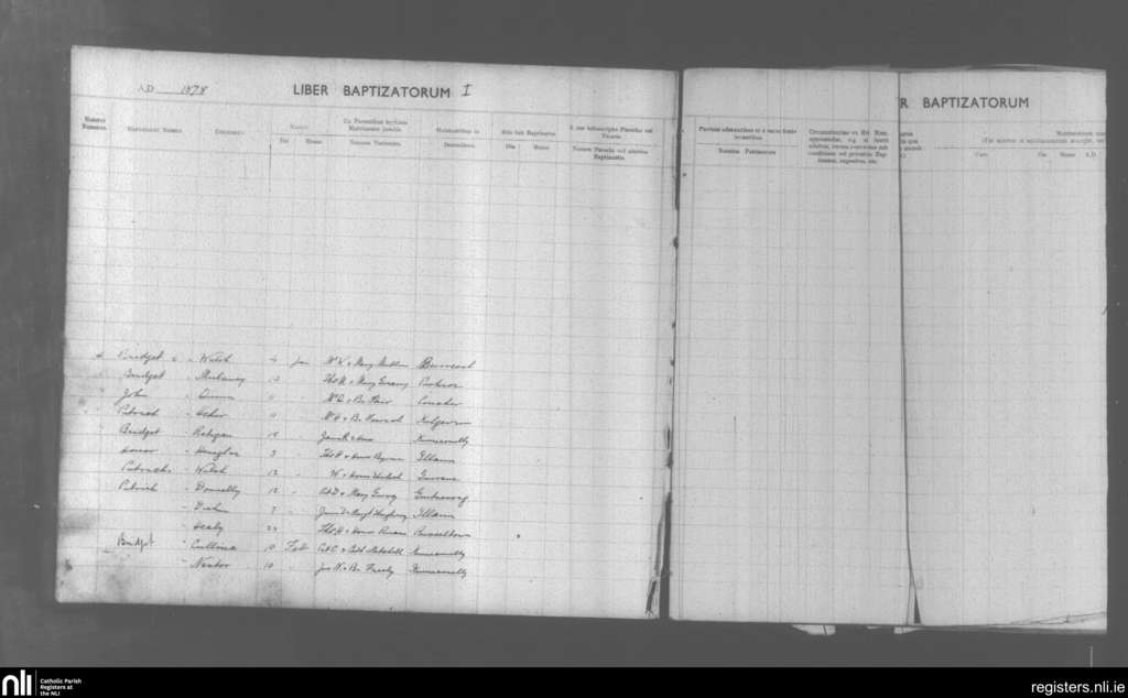 Addergoole and Liskeevy; County of Galway; Archdiocese of Tuam. Baptisms