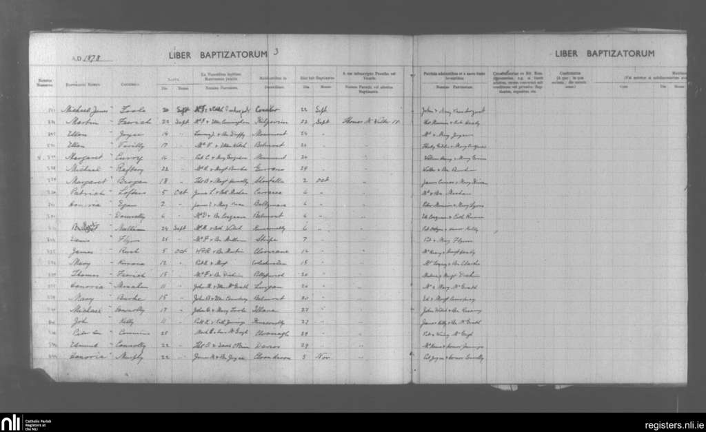Addergoole and Liskeevy; County of Galway; Archdiocese of Tuam. Baptisms, Sep. 1878 to Nov. 1878