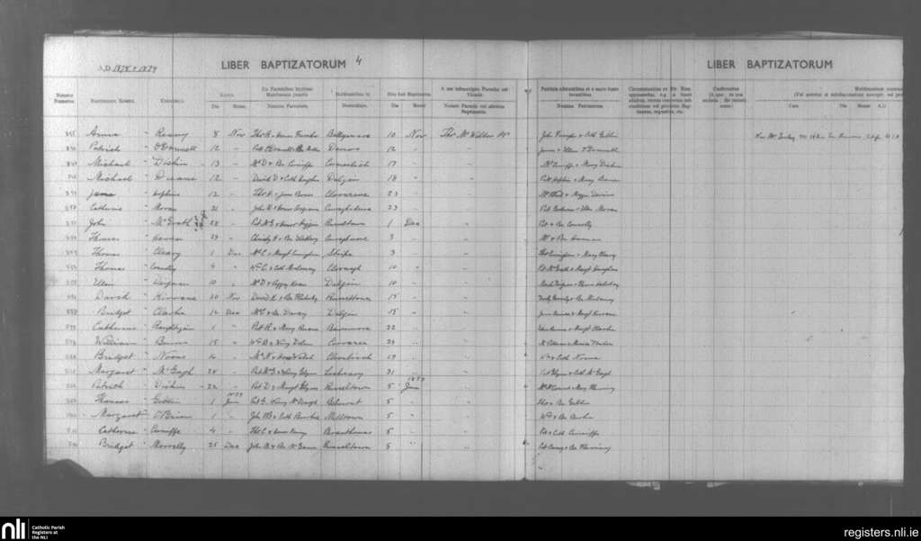 Addergoole and Liskeevy; County of Galway; Archdiocese of Tuam. Baptisms, Nov. 1878 to Jan. 1879