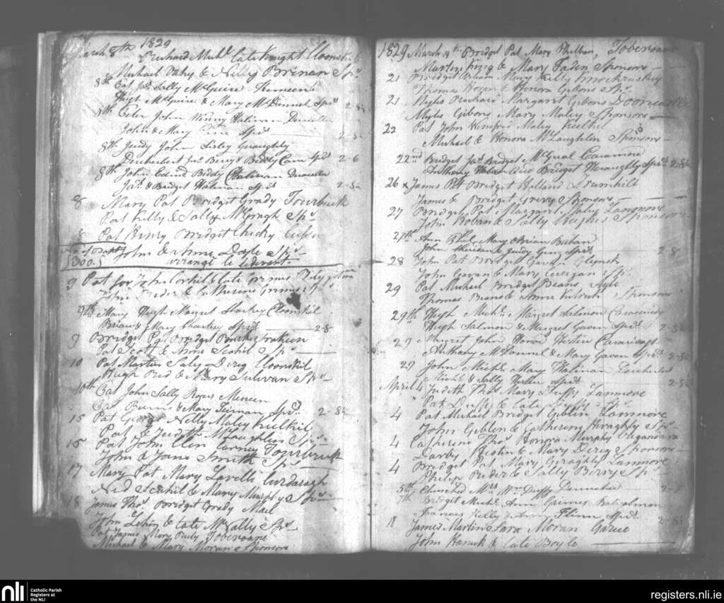 Aughagower; County of Mayo; Archdiocese of Tuam. Baptisms, Mar. 1829 to Apr. 1829