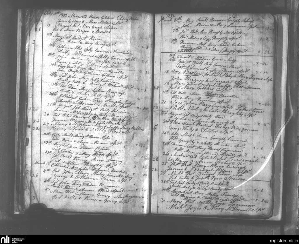 Aughagower; County of Mayo; Archdiocese of Tuam. Baptisms, Feb. 1832 to Mar. 1832