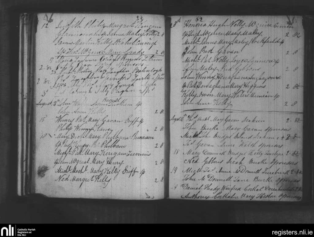Aughagower; County of Mayo; Archdiocese of Tuam. Baptisms, Aug. 1844