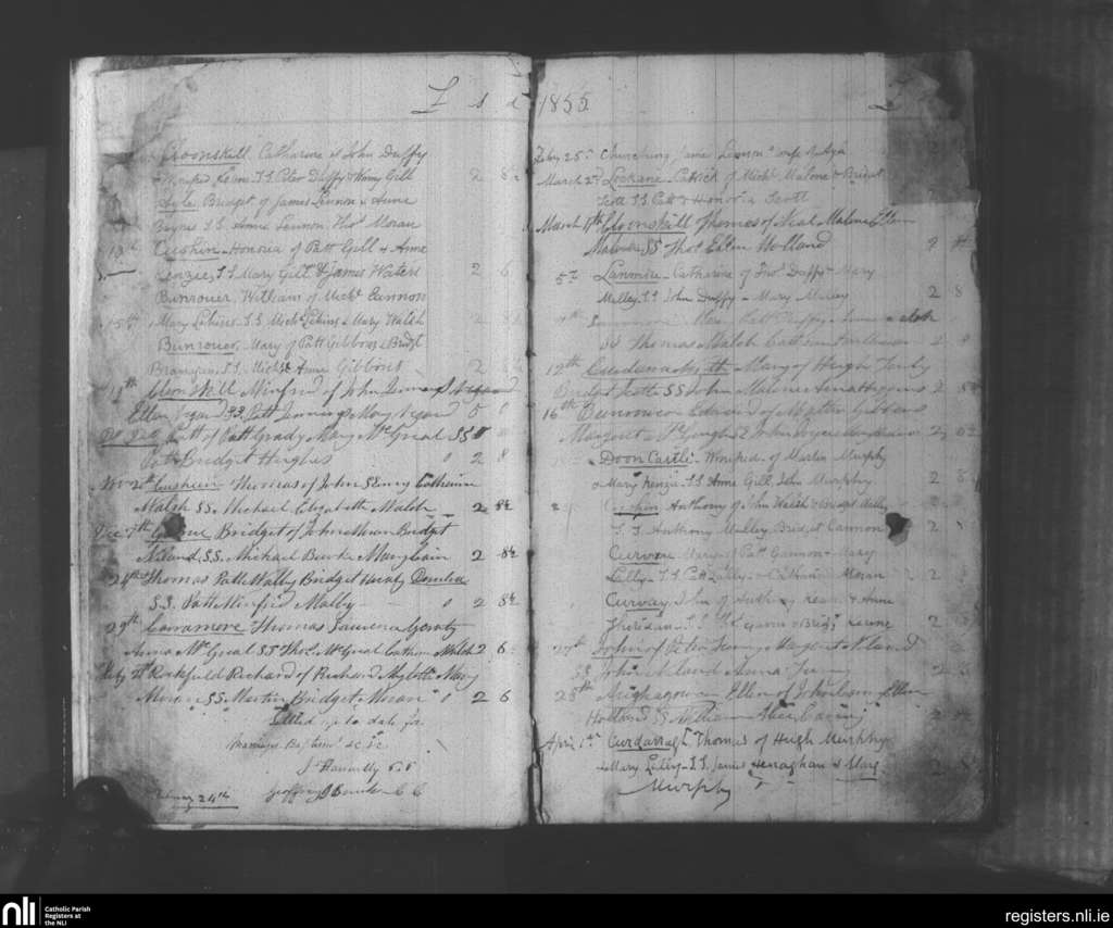 Aughagower; County of Mayo; Archdiocese of Tuam. Baptisms, Feb. 1855 to Dec. 1855